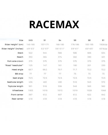 Conçu pour être le vélo de course sur gravier parfait : le cadre Racemax (Integrale) est le plus rapide avec des pneus WAM 700c 35-46 mm. Construit ainsi, sa vitesse maximale rivalise avec les meilleurs vélos de route existants. Que vous rouliez sur l'asphalte, sur du gravier facile ou dur, vous pouvez être sûr d'avoir la configuration la plus rapide sur la ligne de départ.