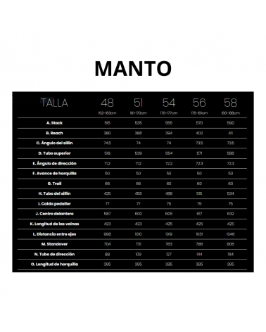 - Potence : potence intégrée MANTO en aluminium forgé - 90 mm, 100 mm ou 110 mm