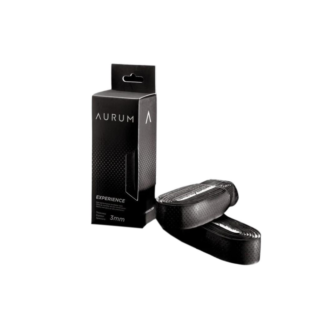Ruban de guidon AURUM Experience. Style « Tacky » de 3 mm d'épaisseur. Comprend deux embouts AURUM en plastique avec capuchon en aluminium.