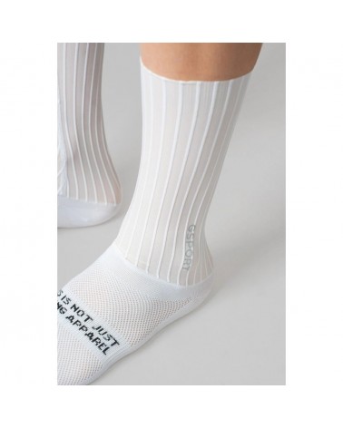 Les chaussettes Aero Ivory sont conçues pour les cyclistes à la recherche de performances maximales en compétition comme lors des entraînements intensifs. Un accessoire technique pensé pour optimiser chaque détail lorsque l’exigence est élevée.