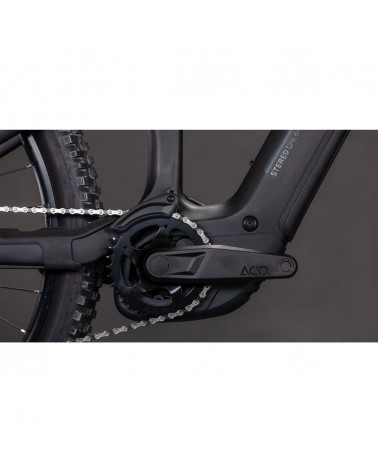 Un grand vélo se distingue par les petits détails, et le cadre du Cube Stereo Hybrid ONE44 HPC regorge d’ingéniosité. Le passage interne des câbles complète parfaitement les lignes épurées du triangle principal en carbone haute performance, tandis que la direction à angle ajustable permet d’adapter le comportement à vos besoins spécifiques. Un guide-chaîne à montage direct maintient la transmission bien alignée, et l’écran Bosch Purion 400, intégré de façon harmonieuse au tube supérieur, affiche d’un coup d’œil les performances du puissant moteur Bosch Performance CX et de la batterie PowerTube 800 Wh. Avec une fourche de 150 mm et un débattement arrière de 140 mm, elle est prête à affronter les terrains les plus exigeants. La patte UDH confirme qu’elle est tournée vers l’avenir. Et grâce au système Size Split, elle offre une large gamme de tailles pour s’adapter à la plupart des cyclistes.