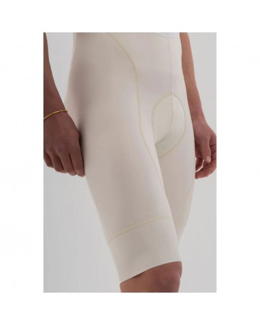 Les bretelles découpées au laser dans un tissu indémaillable offrent une grande élasticité et une légère compression qui répartit uniformément la tension et s’adapte à toutes les morphologies. Il intègre une peau dolomiti composée de trois couches de mousse de différentes densités avec une épaisseur totale de 16 mm, conçue pour offrir protection et soutien pendant plus de 6 heures sur la selle.