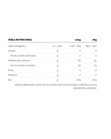 Sous forme de stick de 76 g et avec 200 kcal, ils contiennent 50 g de glucides par gel dans une proportion de 1:1 pour les glucides complexes et simples.