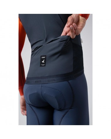 Ultra-léger et pliable, avec un nouveau patron optimisé qui améliore l'aérodynamisme sur le vélo. Il combine des tissus en nylon et élasthanne qui offrent une protection efficace et une grande adaptabilité grâce à leur élasticité optimale. Le panneau arrière utilise un tissu élastique ultra-léger qui permet d'évacuer la chaleur résiduelle lorsque l'intensité augmente. Dans cette nouvelle version, les ouvertures à l'arrière ont été redessinées pour faciliter l'accès aux poches du maillot.