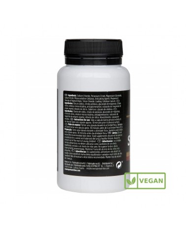 Chlorure de sodium, citrate de potassium, gluconate de magnésium, citrate de calcium, cellulose microcristalline, anti-agglomérants, stéarate de magnésium d'origine végétale, dioxyde de silicium. Enrobage : capsule de cellulose.