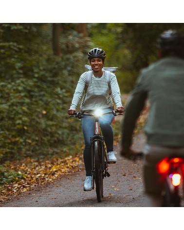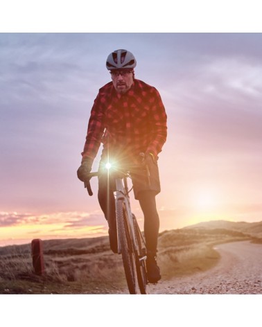 Feu avant Buster 400 LED avec 5 modes d'éclairage et jusqu'à 25 heures d'autonomie. La LED haute puissance Osram et la lentille conçue par Sigma assurent une répartition très uniforme du faisceau.