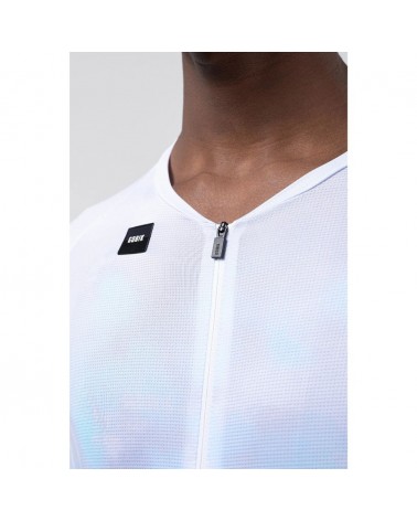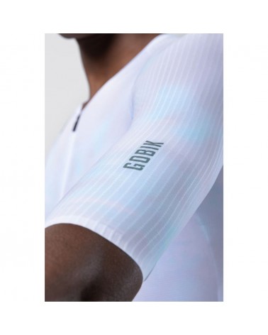 Maillot haute performance conçu pour optimiser l'aérodynamisme et l'efficacité en compétition, avec une coupe ultra-moulante, des tissus techniques avancés et une construction thermosoudée.