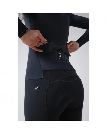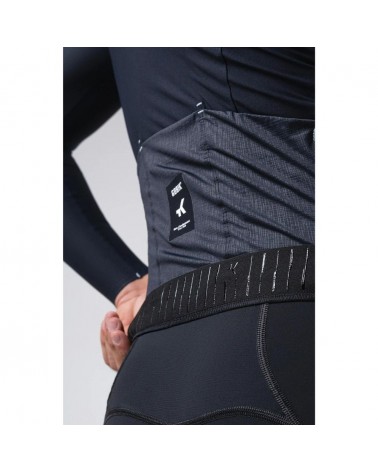 Il est fabriqué dans un tissu solide et très élastique, qui s'adapte parfaitement à notre corps, sans gêner les mouvements sur le vélo et en offrant un toucher doux sur la peau. Son grammage étudié offre une protection thermique parfaite sans être trop chaud, exactement ce que nous recherchons pendant les saisons intermédiaires. Il est également idéal pour être combiné avec d'autres couches et élargir ainsi sa plage de température.