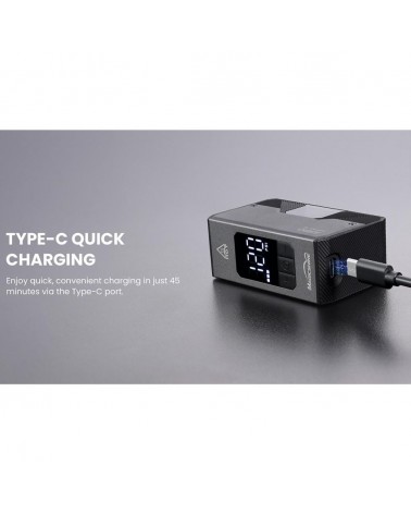 Recharge rapide en 45 minutes via USB-C, garantissant un démarrage rapide.