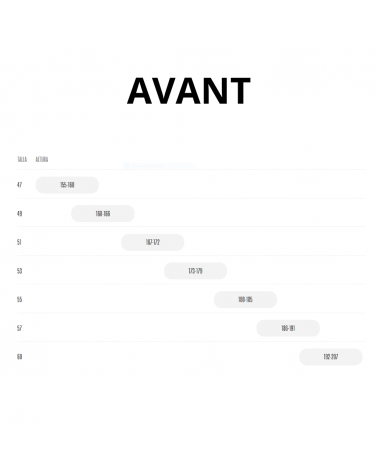 - Cadre : Orbea Avant Hydro disc, aluminium hydroformé triple épaisseur, HS 1,5" ICR, BB 68 mm – BSC anglais, axe traversant 12x142 mm à l'arrière, filetage M12x2 P1, acheminement interne des câbles, SP 27,2 mm, système MMS.