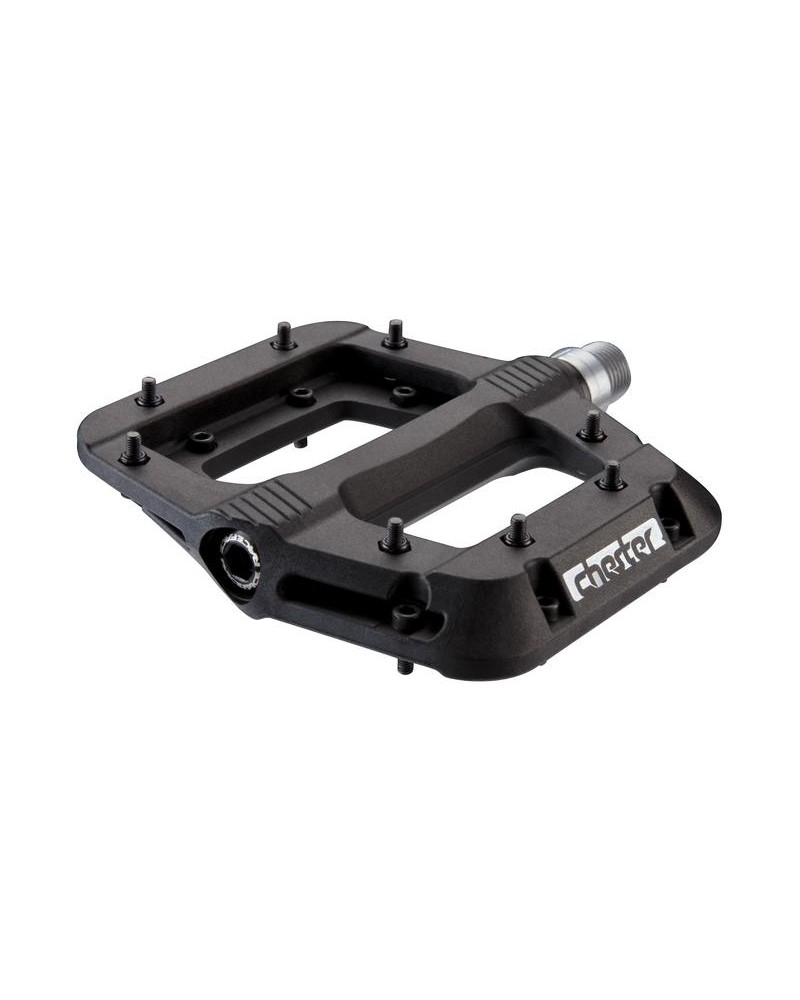 Fabriquées avec un corps en nylon composite, elles offrent une large plateforme avec la même fixation que les pédales traditionnelles en aluminium grâce à 8 broches hexagonales de chaque côté. Fines et légères, les Chesters ont un axe en chromoly entièrement scellé et des roulements et des douilles pouvant être entretenus.