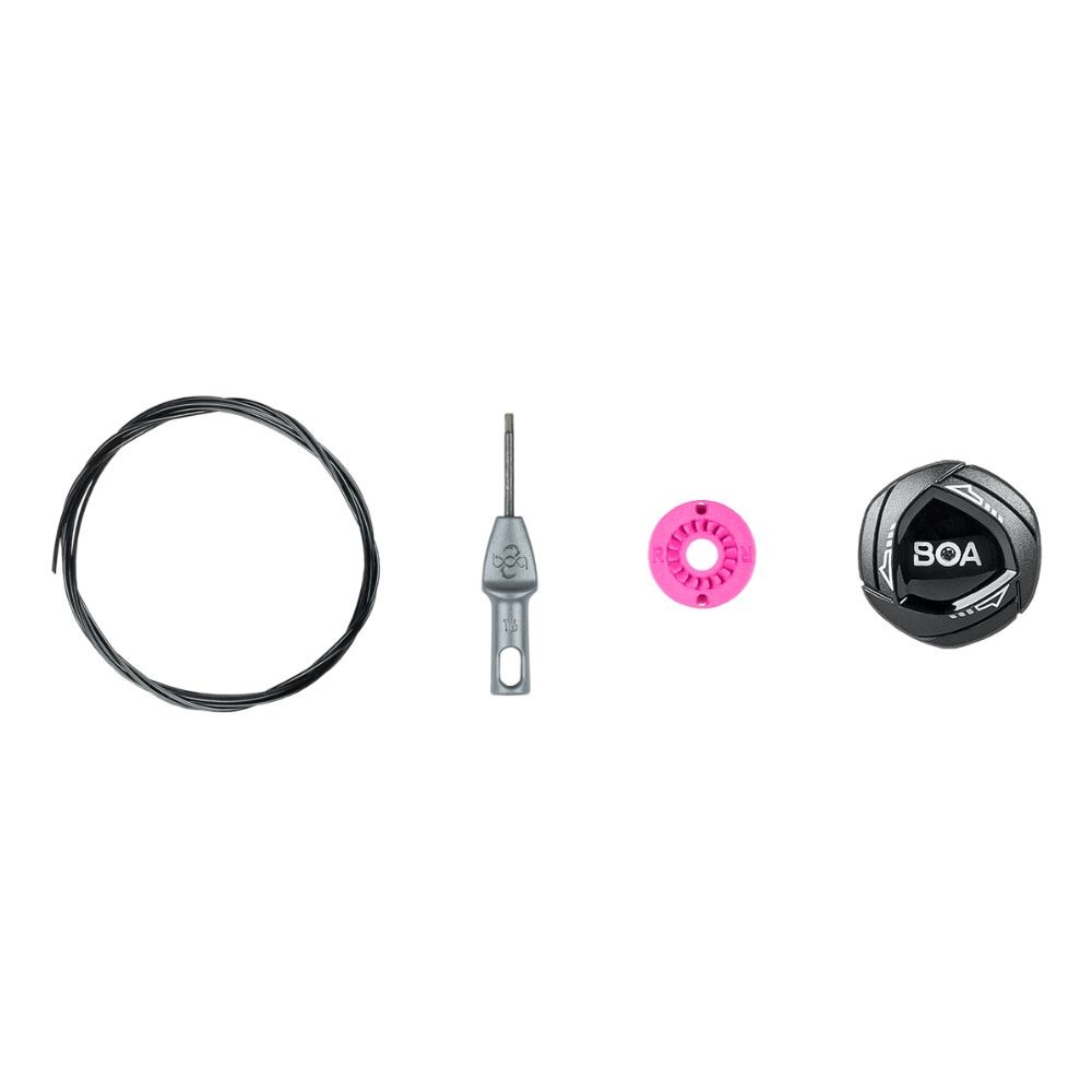 Les kits BOA® IP1 comprennent une molette de réglage, un câble de 1 m, un outil T6 et des instructions.