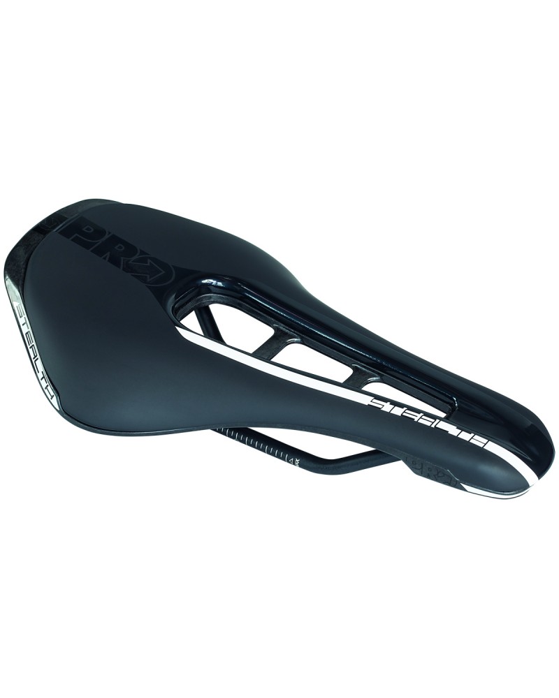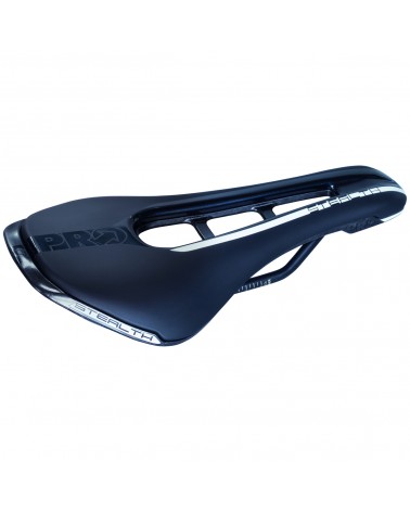 La selle PRO Stealth a été conçue pour les cyclistes qui adoptent une position agressive et avancée sur leur vélo. Elle intègre une base légère mais rigide en polymère renforcé de carbone moulé dans la masse, placée sur des rails en acier inoxydable, avec une finition en édition limitée.