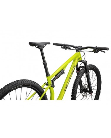 - Cadre : Alliage Specialized D'Aluisio Smartweld M5, tubes hydroformés, géométrie XC progressive, débattement de 110 mm, acheminement interne des câbles, boîtier de pédalier BSA, espacement 12x148 mm, compatible avec une tige de selle télescopique de 30,9 mm