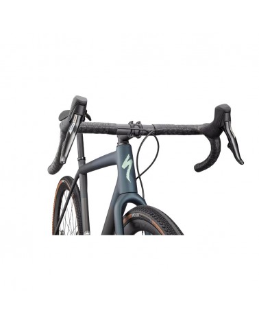 - Roue avant : Roval Terra CL, largeur interne 25 mm, profondeur 32 mm, 24 trous, compatible tubeless, DT pour moyeu Roval 350, disque Centerlock, rayons DT Swiss Competition Race