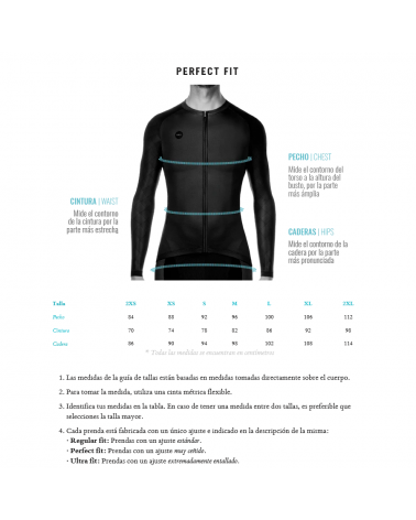 Manches parfaitement ajustées, pour ne pas pénaliser l'aérodynamisme. Poignets conçus pour s'enfiler facilement dans des gants longs.