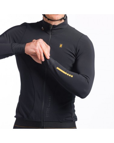 Veste cycliste thermique conçue avec un patronage original et innovant qui améliore l'aérodynamisme sur le vélo. Son tissu avec membrane hydrofuge vous protège de l'humidité et de la pluie. Son élasticité permet à la veste de s'adapter parfaitement au corps pendant le pédalage et laisse facilement passer l'air pour améliorer l'aérodynamisme. Elle est dotée d'une fermeture éclair intégrale avec système anti-pull qui vous permet de l'enfiler et de la retirer facilement et de réguler la ventilation pendant l'effort.